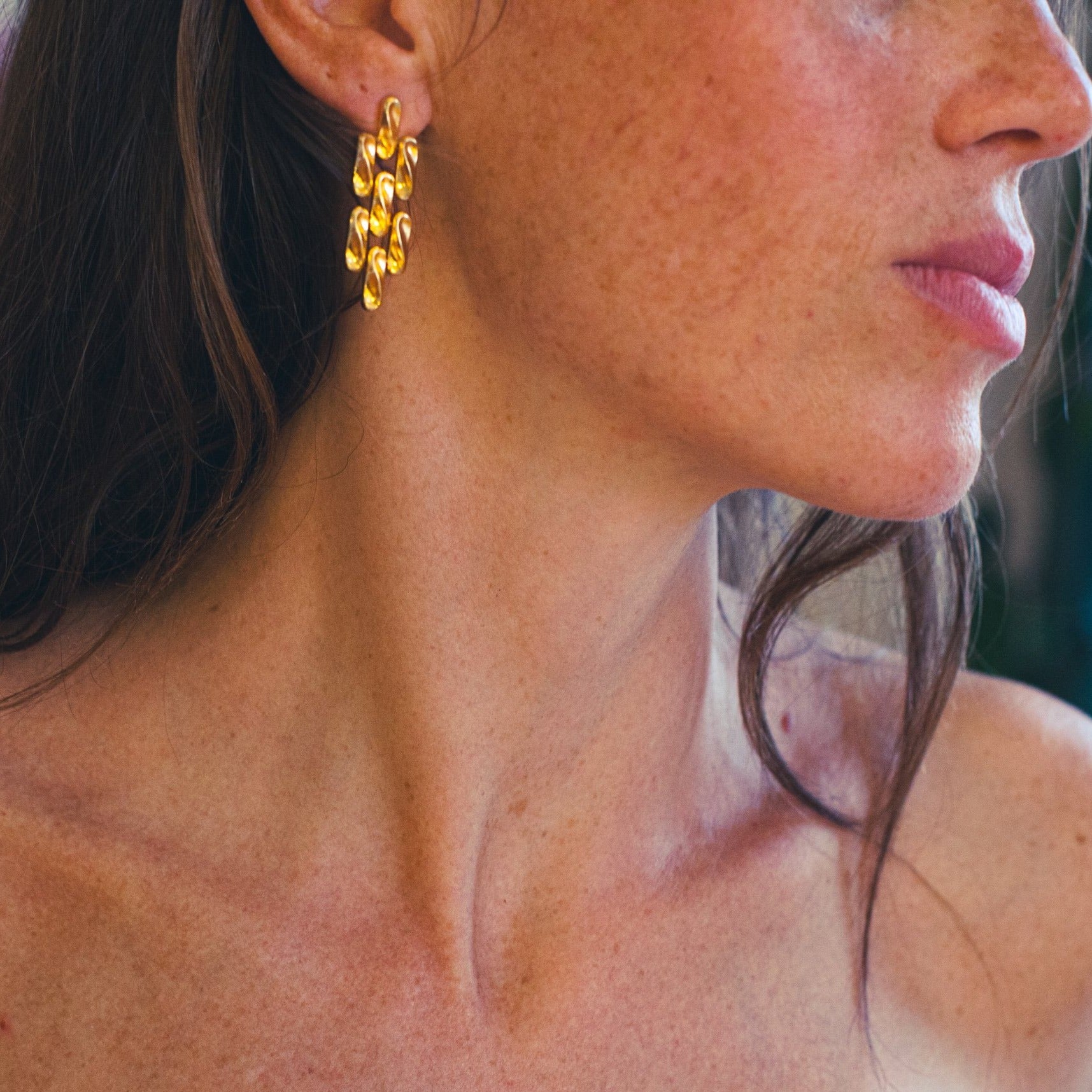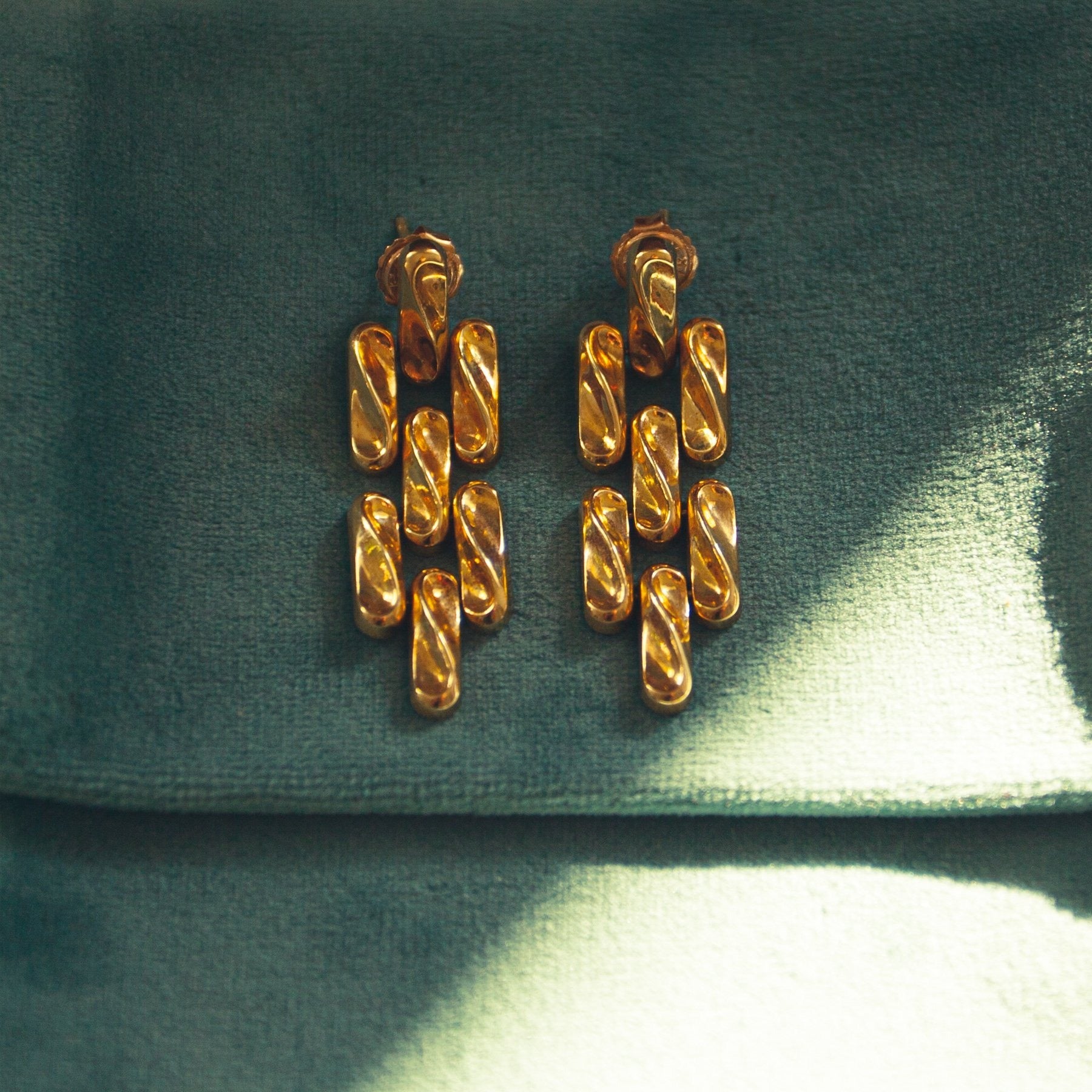 A vintage pair of 18k link earrings wich suspend effortlessly from the ear. 6,50 gr. 4 cm.
