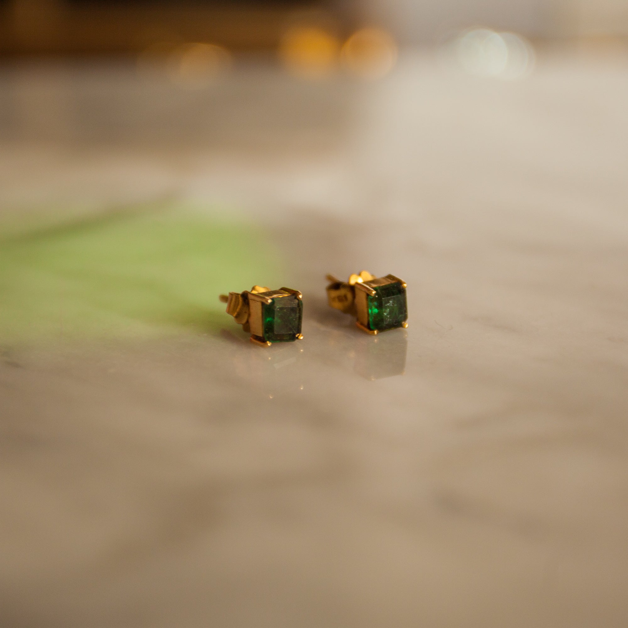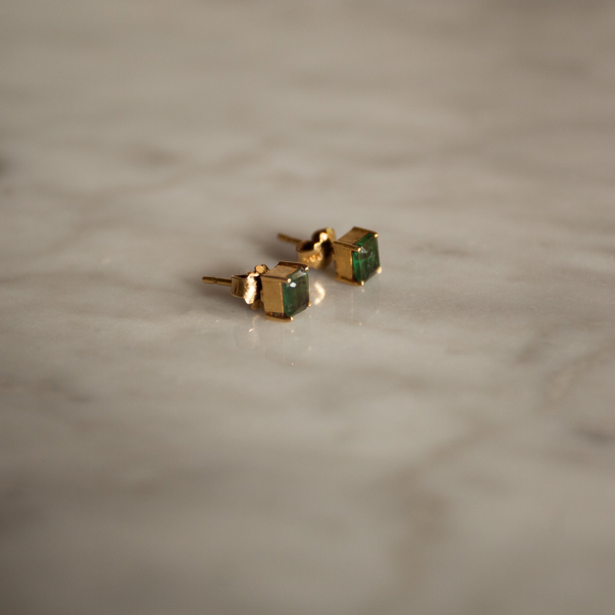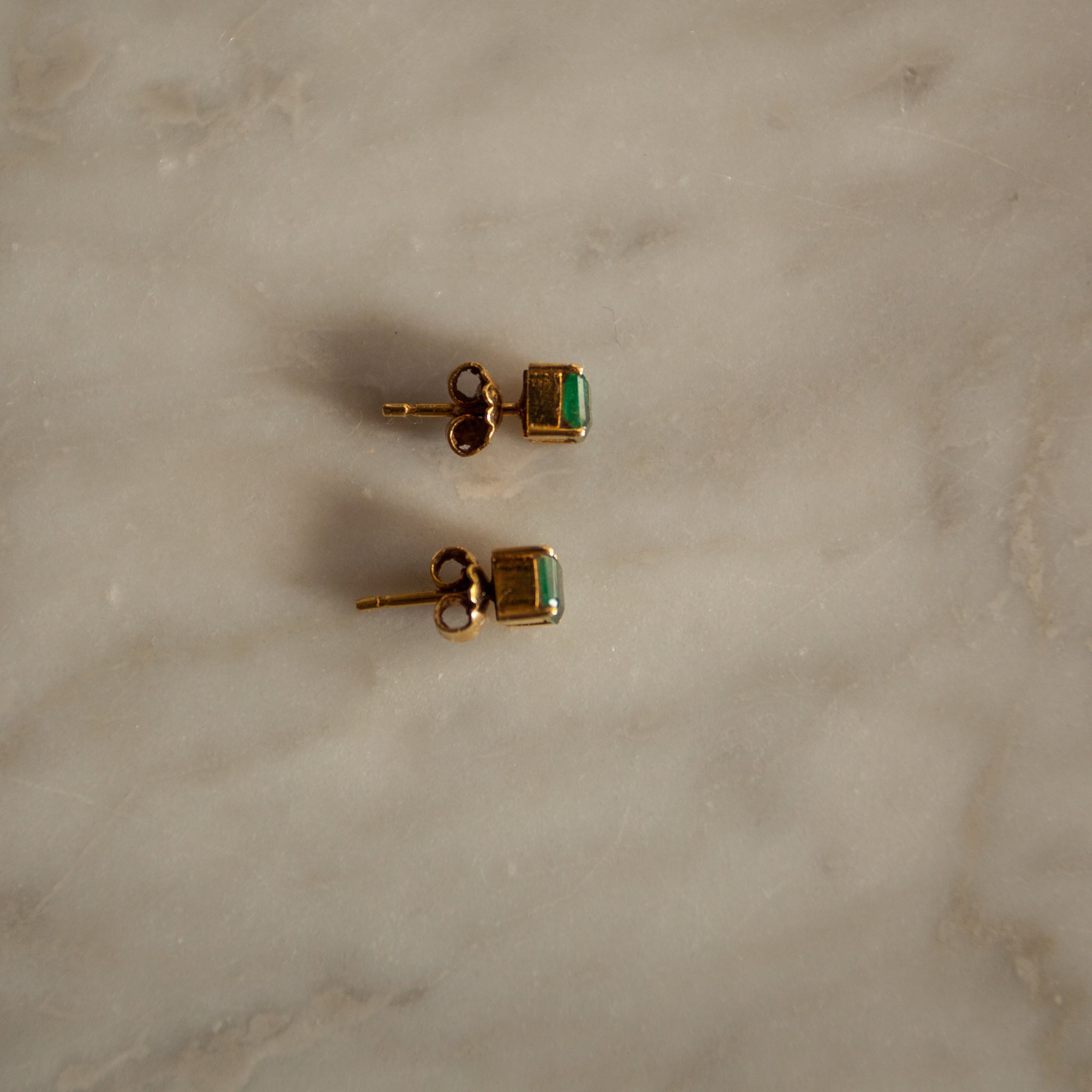 Vintage 18 k yellow gold earrings with emeralds set in claws with four points.