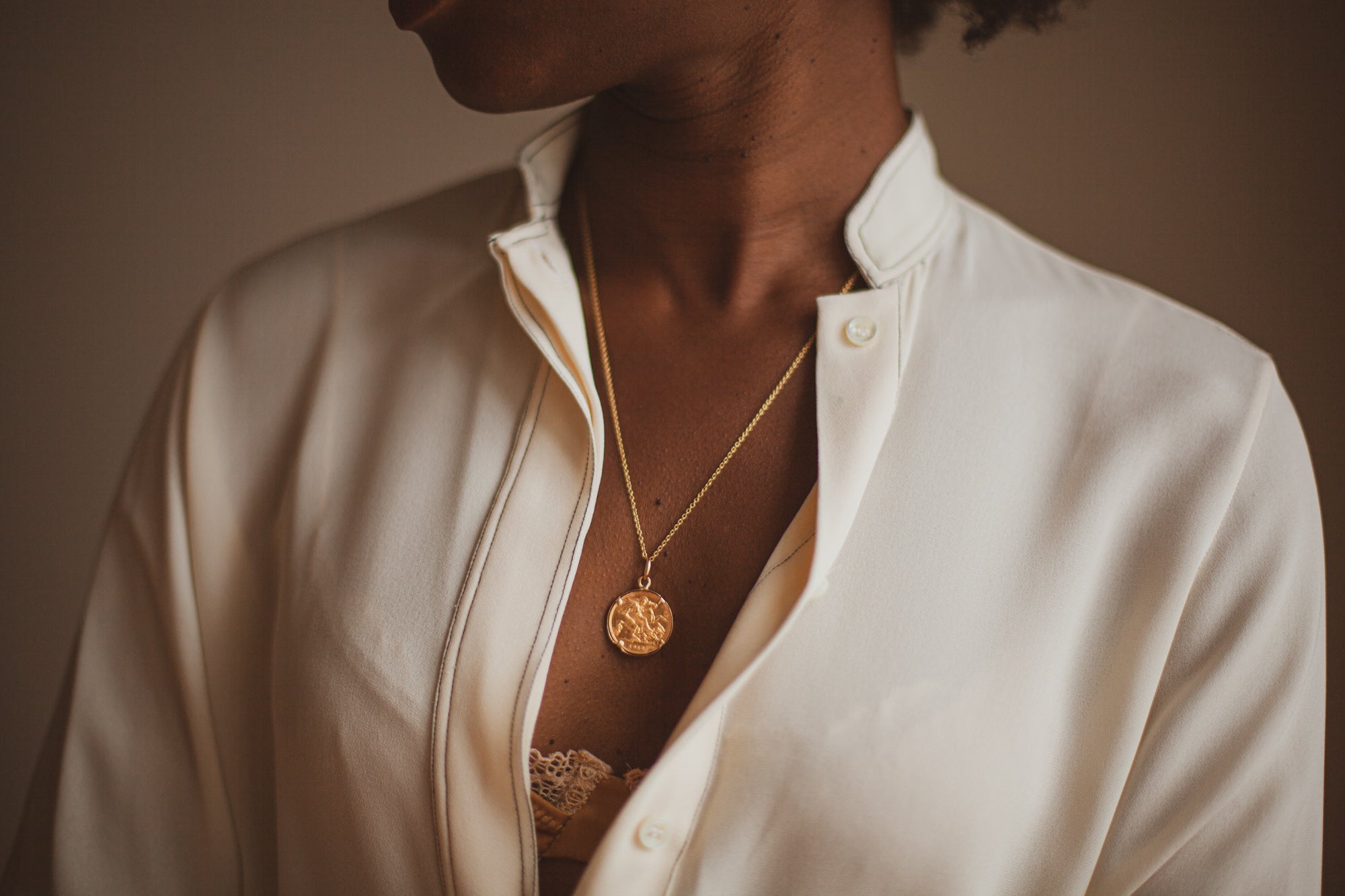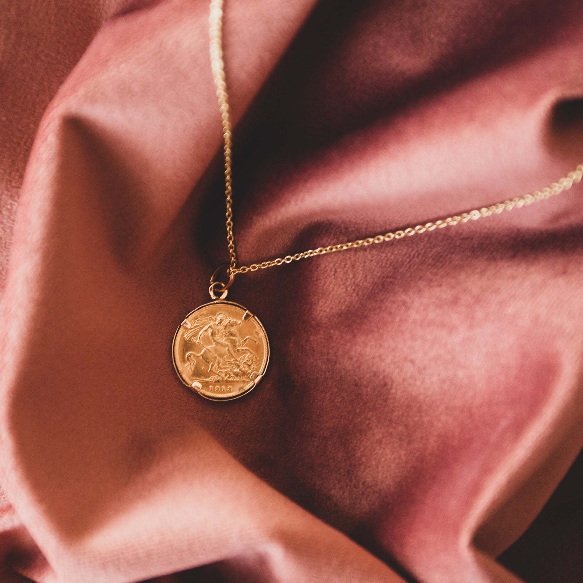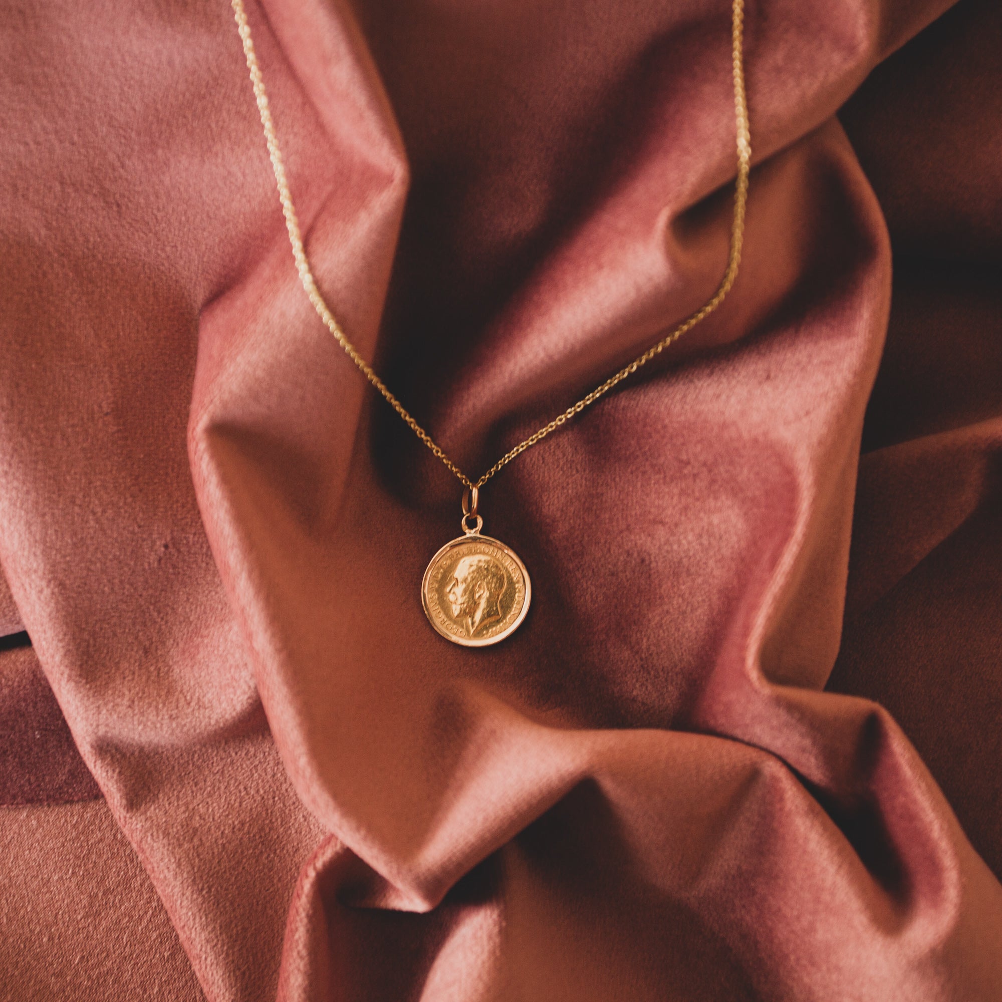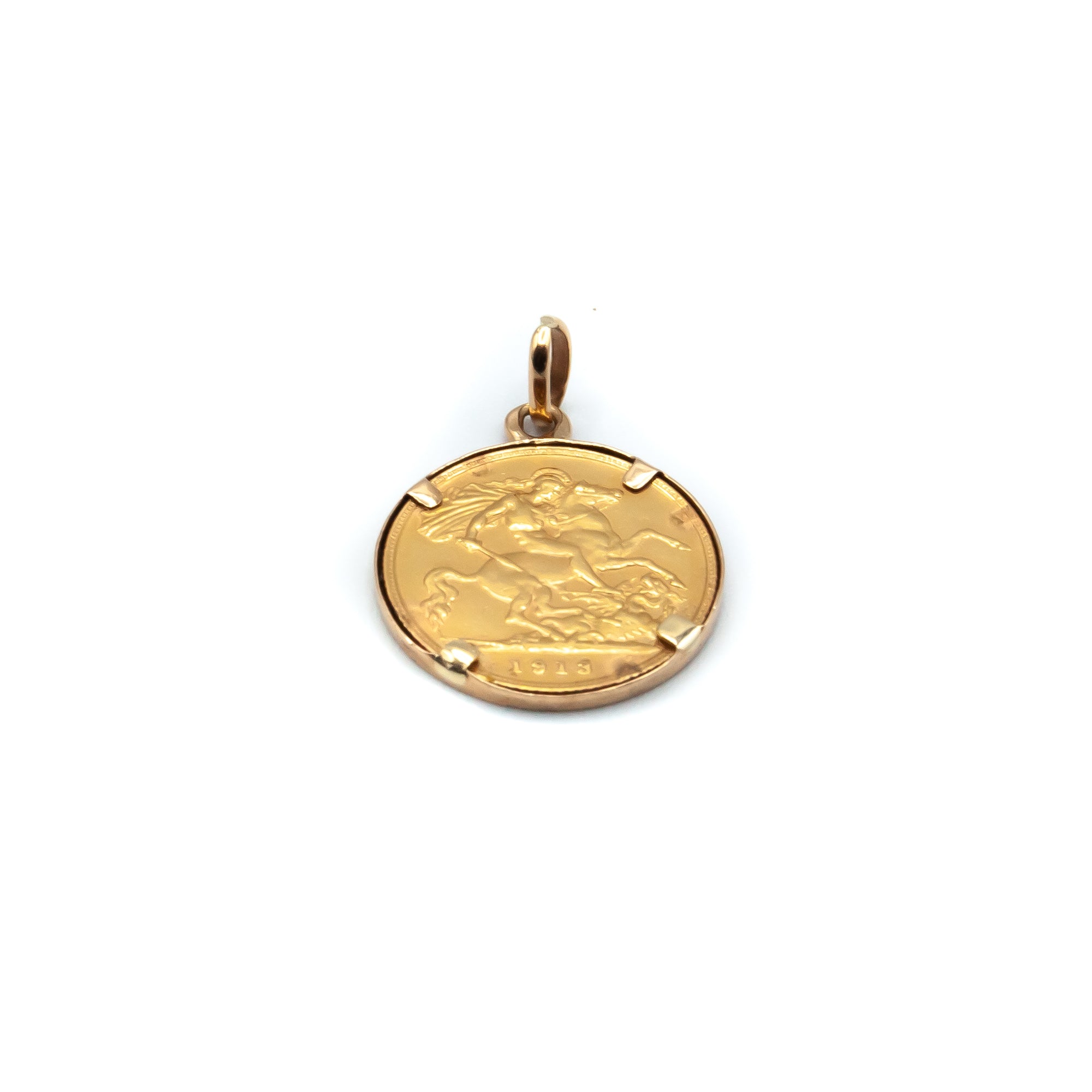 This antique 18k George V medallion was minted at The Royal Mint in London.