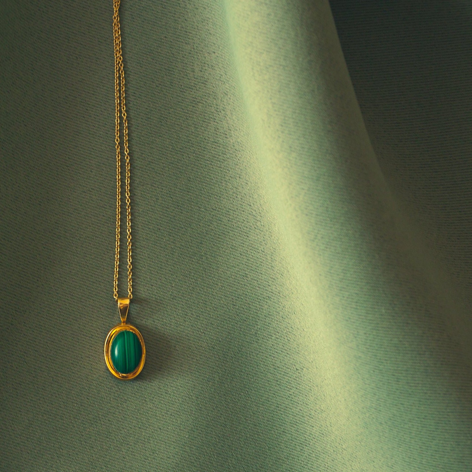 Vintage 18k yellow gold malachite pendant size 2,5 cm. 3,30 gr.